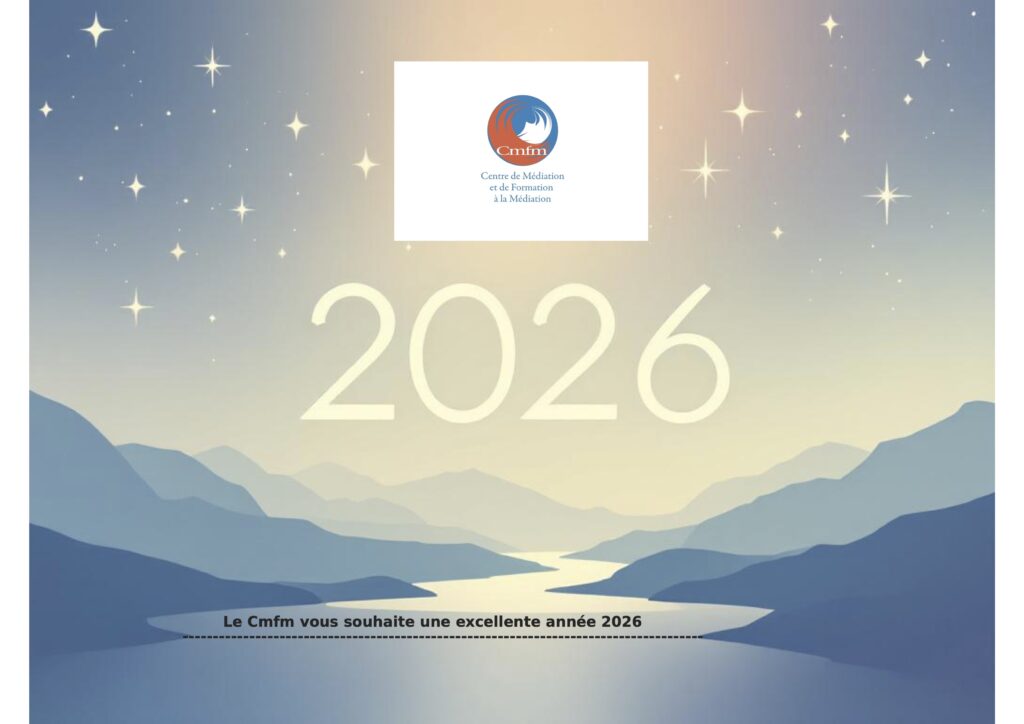 En ce début d’année, toute l’équipe du Cmfm vous adresse ses plus chaleureux vœux de santé, de réussite et de sérénité. Depuis 1987, notre association s’engage chaque jour à promouvoir la médiation comme un outil essentiel de dialogue, de compréhension et de résolution pacifique des conflits.